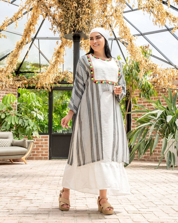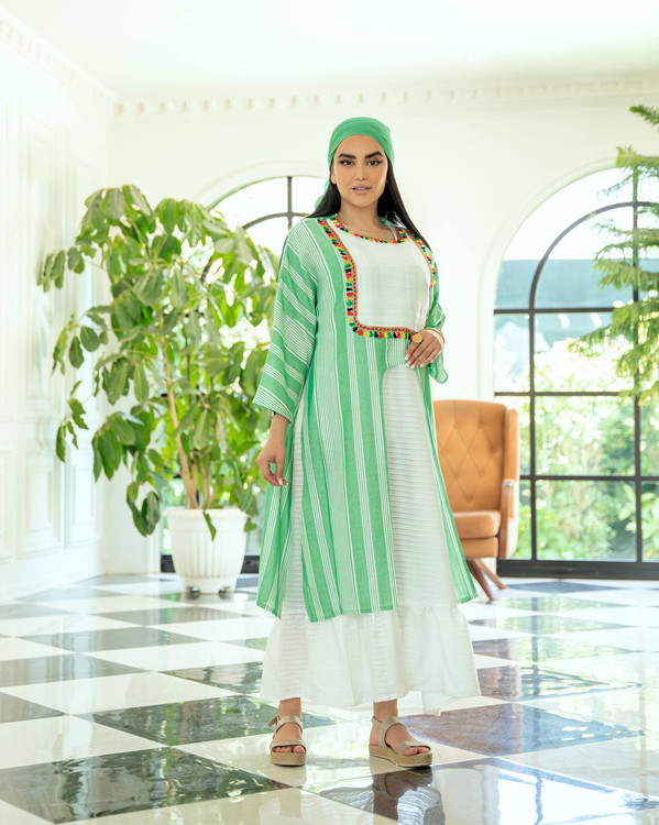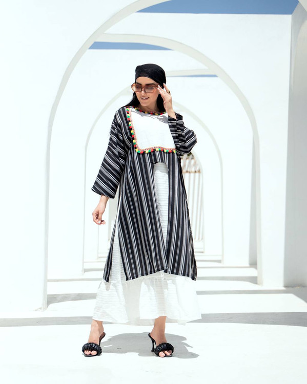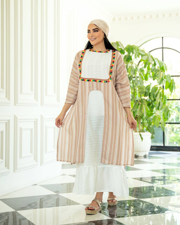 🌸جنس پارچه :رویه کار فانتینی راه راه