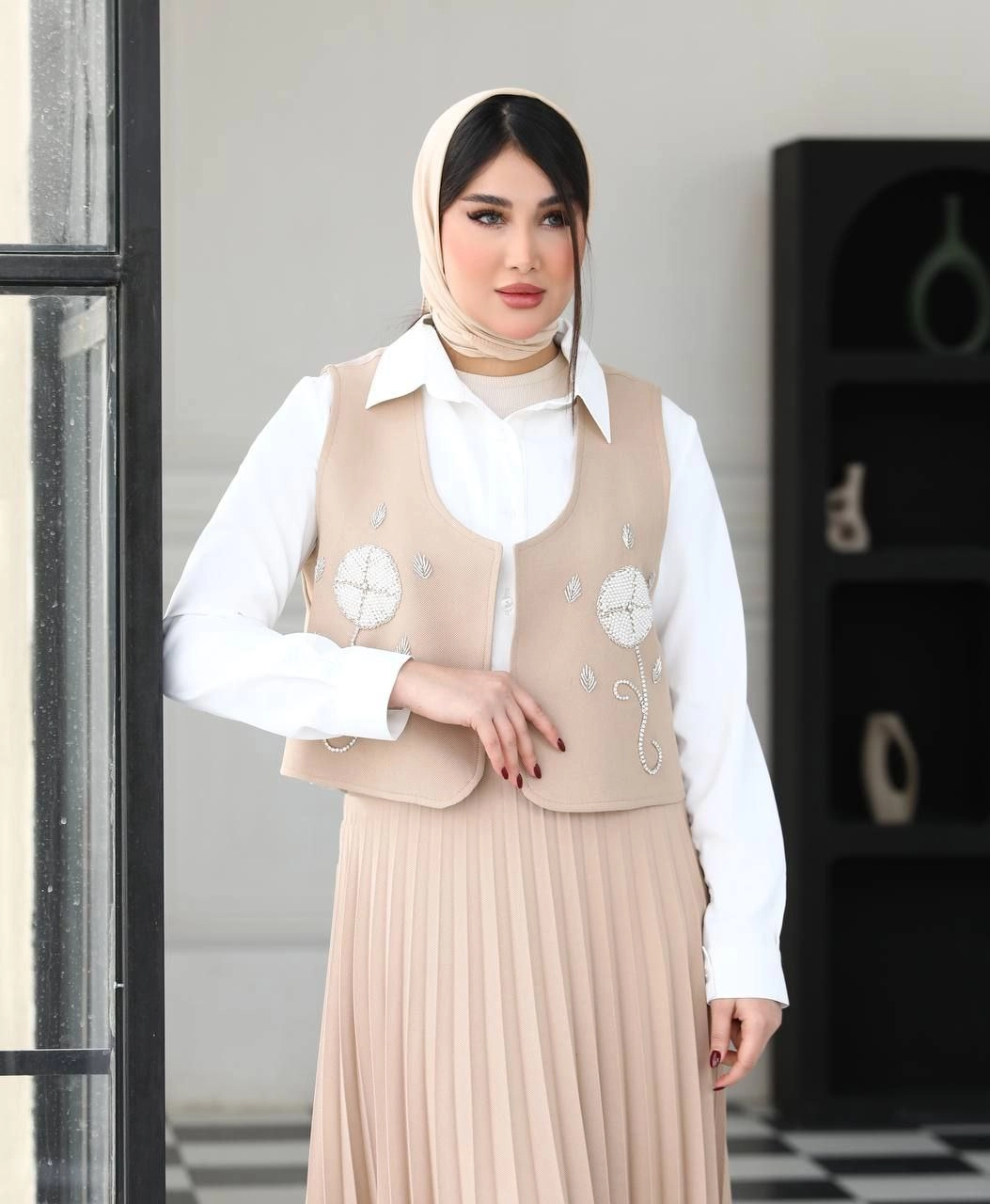 ست سه تیکه مجلسی کارشده ( وست شومیز و دامن پلیسه)