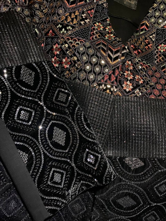 ✅ جنس : ترکیبی مخمل سوزن دوزی و پولکدوزی + فکورا + شانتون اندونزی