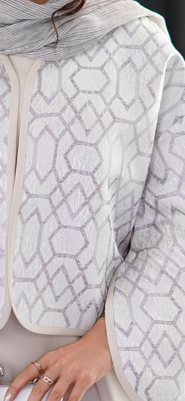 🎨 ۴ ترکیب رنگ: کرم(+ژاکارد کرم)، کرم(+ژاکارد طوسی نقره ای)، مشکی(+ژاکارد طوسی)، مشکی(+ژاکارد سرمه ای)