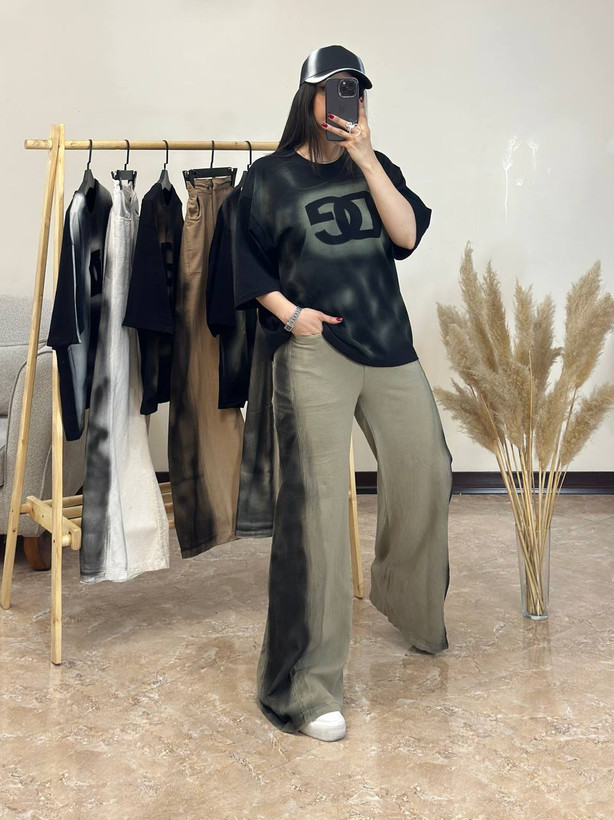 ست تیشرت باکسی و شلوار شافل فول بگ