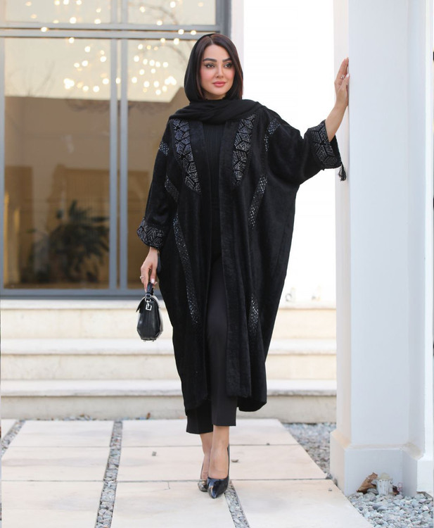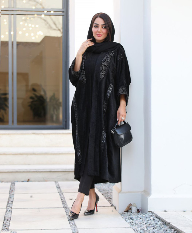 🌿پانچ عبایی جلوباز با خرجکار هندی و نوار پولکی جذاب🥰👌🍂