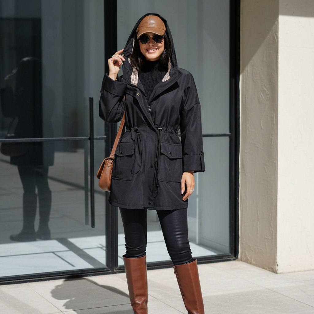 🍂بارانی سانتانا +آستر+کلاه چهارخانه
