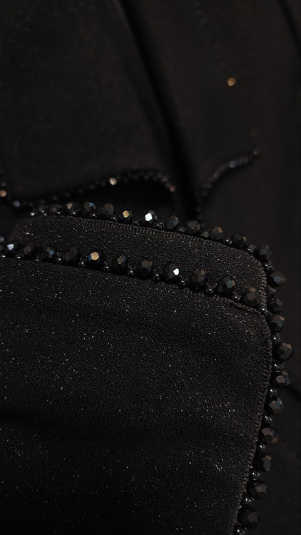⏪ جنس: کرپ لمه ترک درجه یک (فوقالعاده حرفهای) + خرج کار سنگ دوزی شده