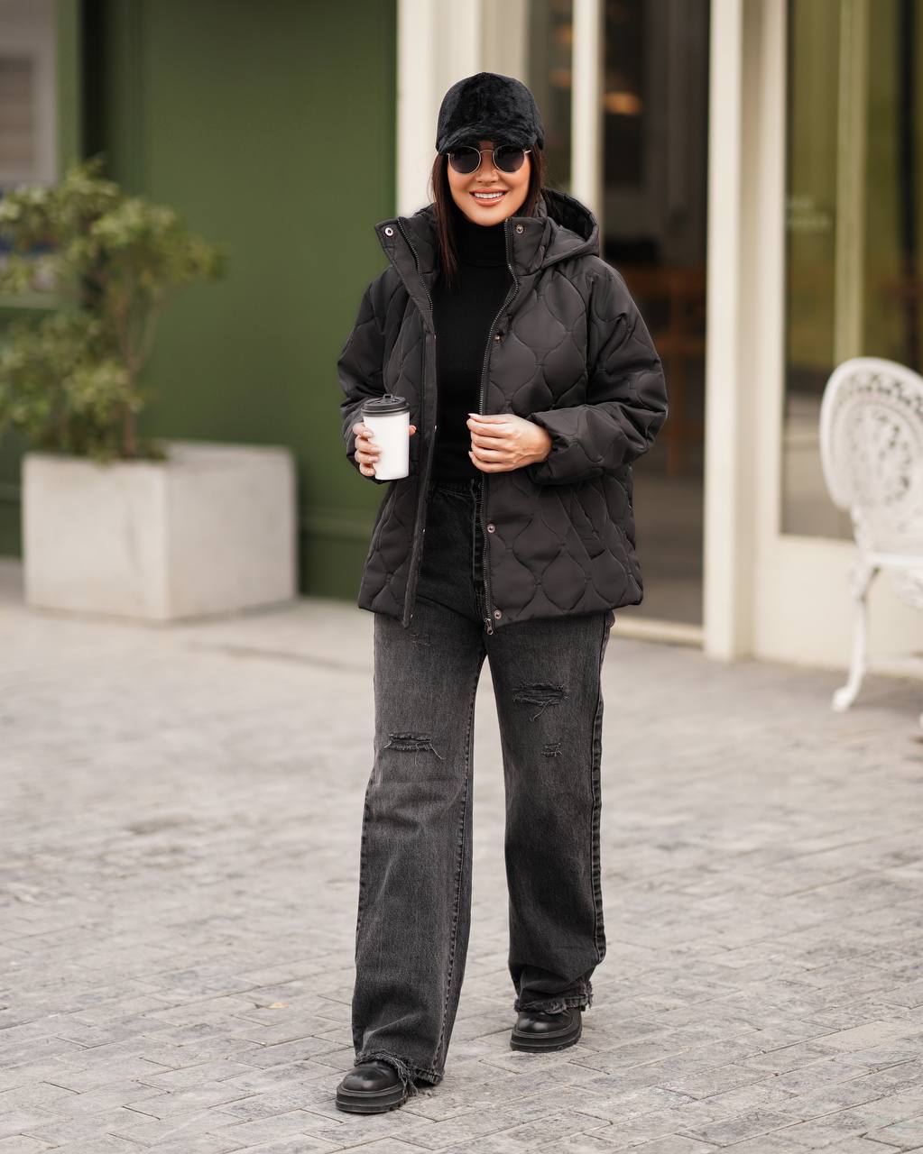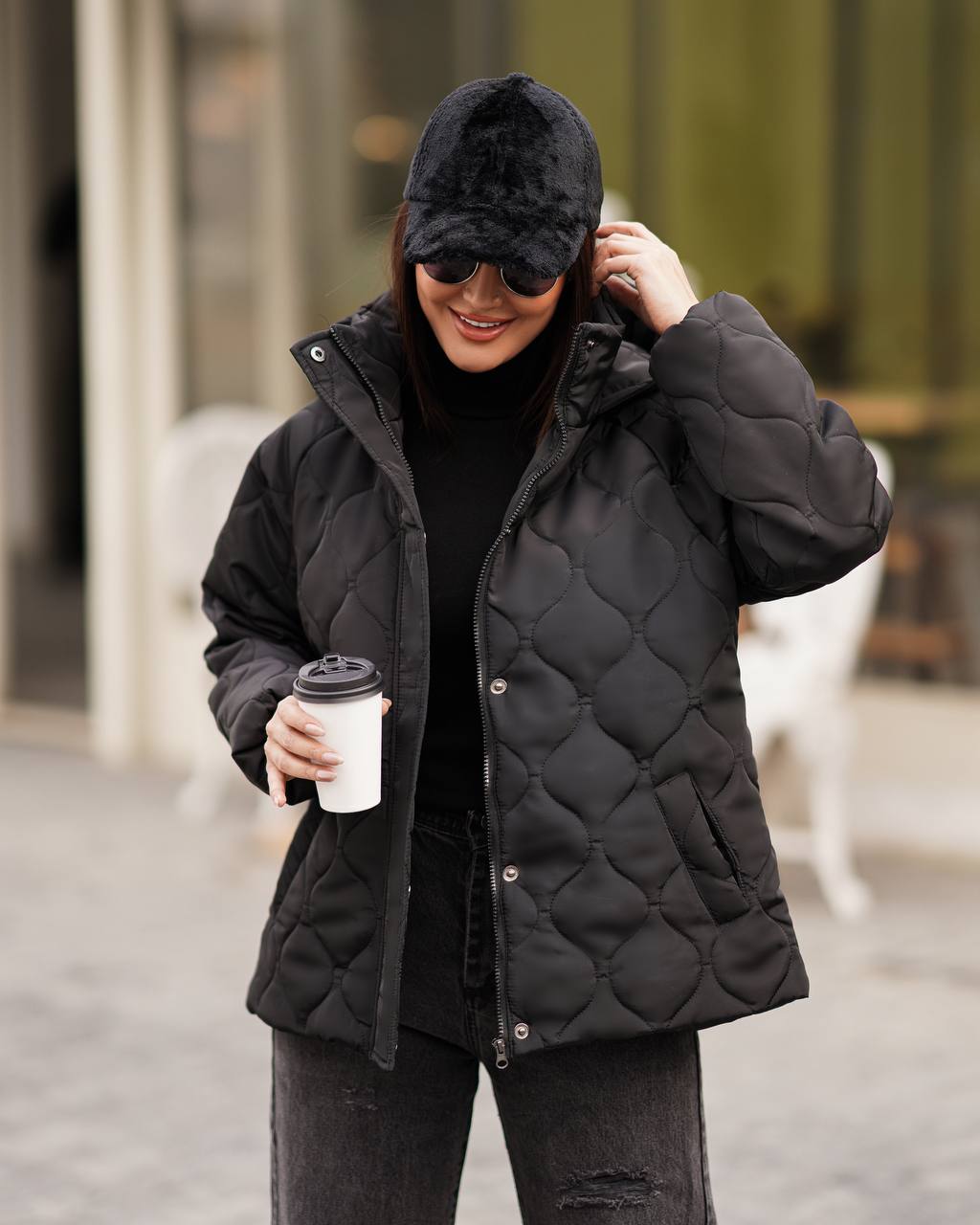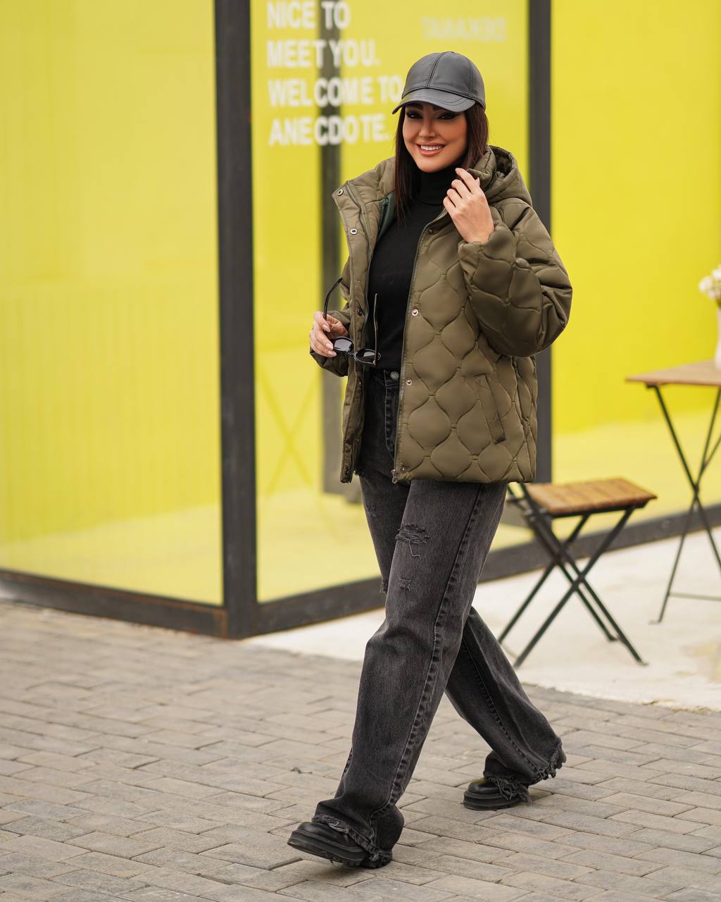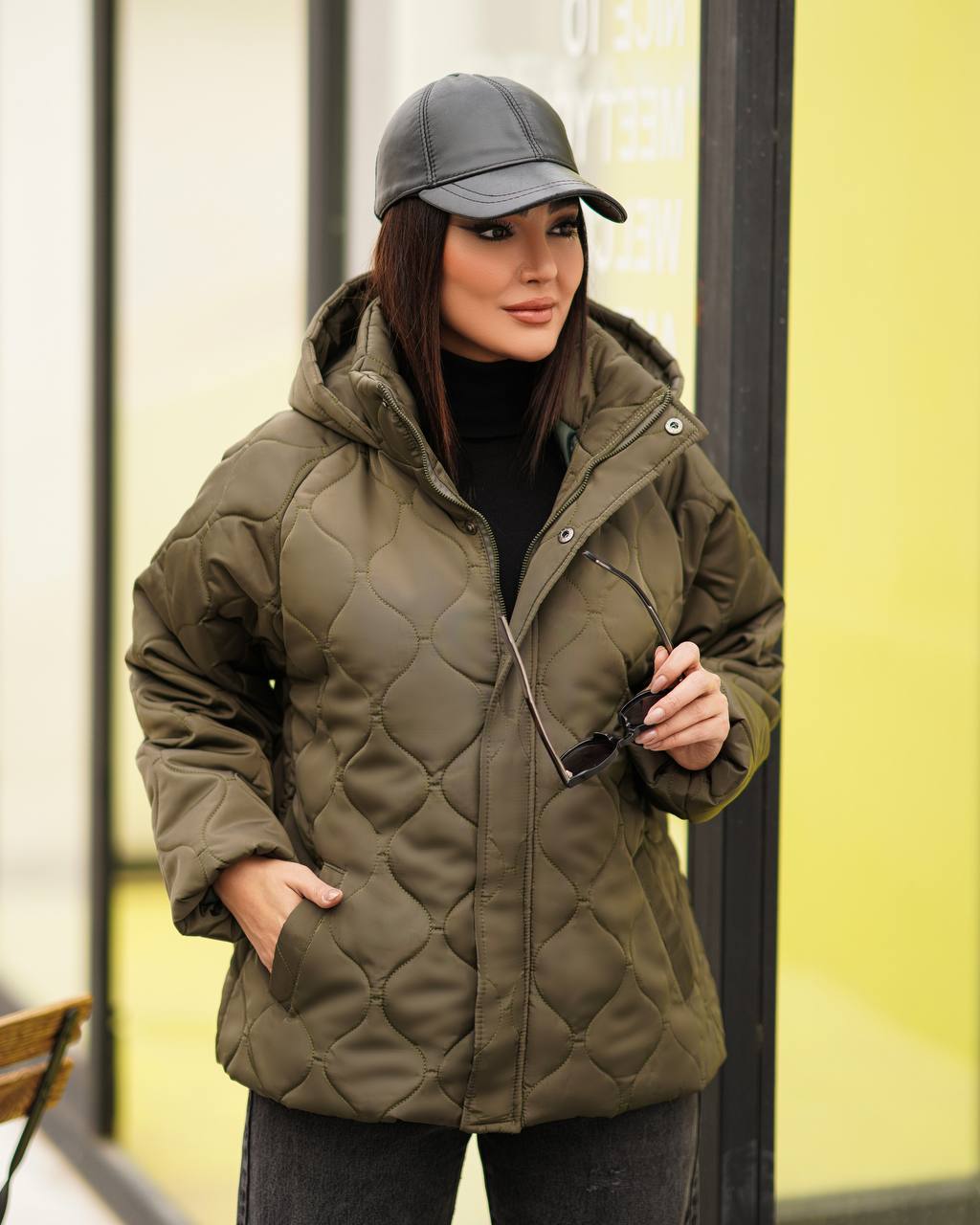 🟢کاپشن کلاهدار کوتاه امبوردی مدل گلنوش کد ۱۶۴