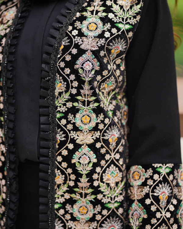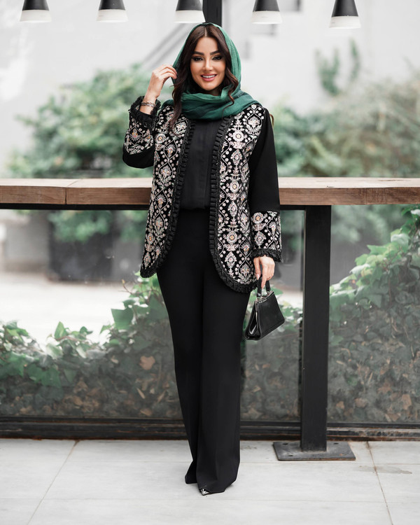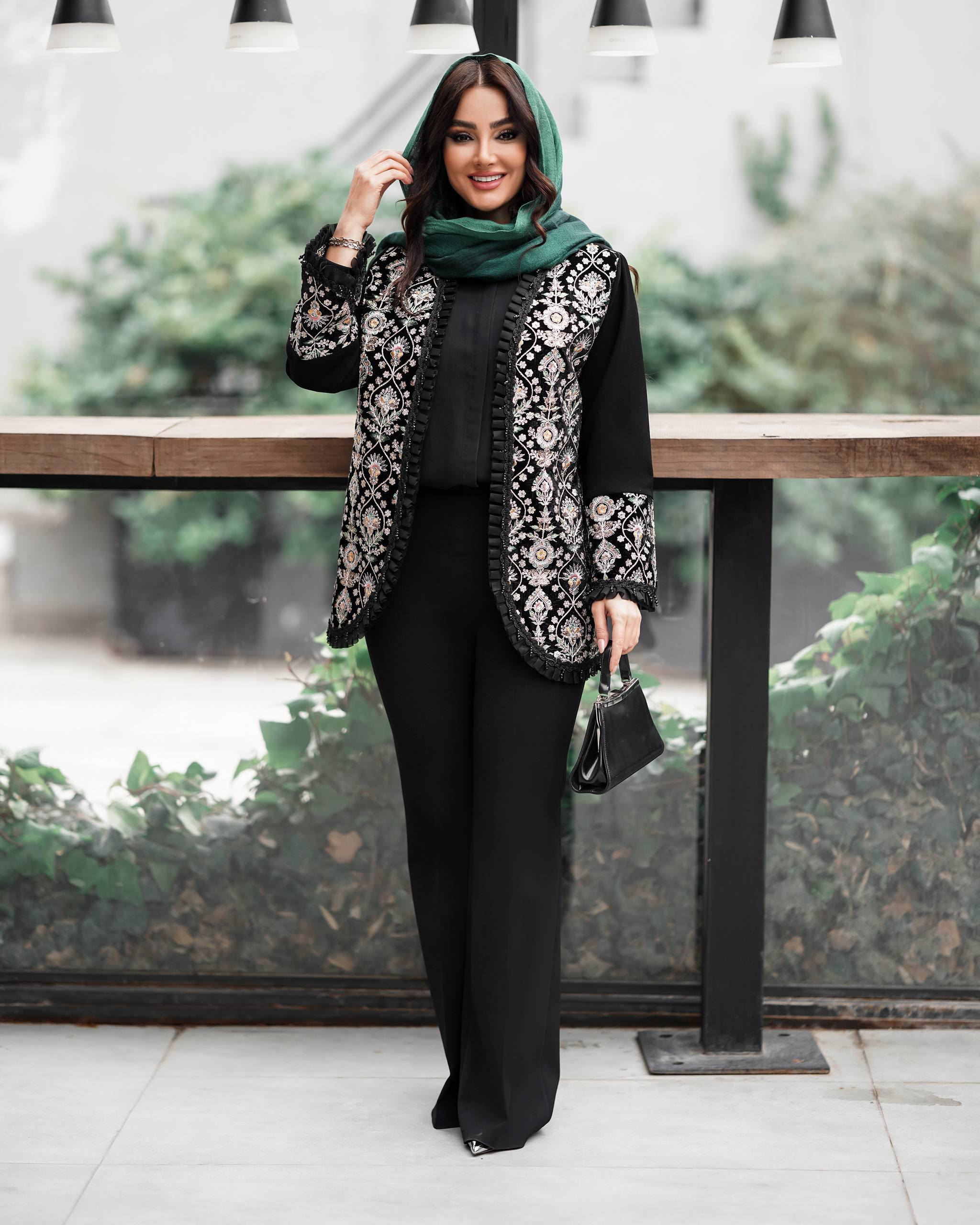 جنس پارچه مرویجت جت بلك +خرجكار دانتل + سنگ دوزي +جلو كار لايي پرشين