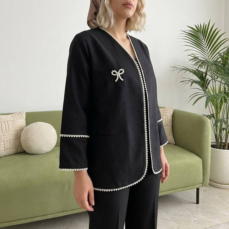 مانتو کتی صوفیا ژاکارد مروارید دوزی