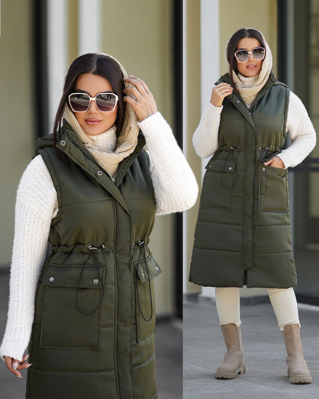 🍂پافر بلند کلاهدار- جلو زیپ و دکمه دار