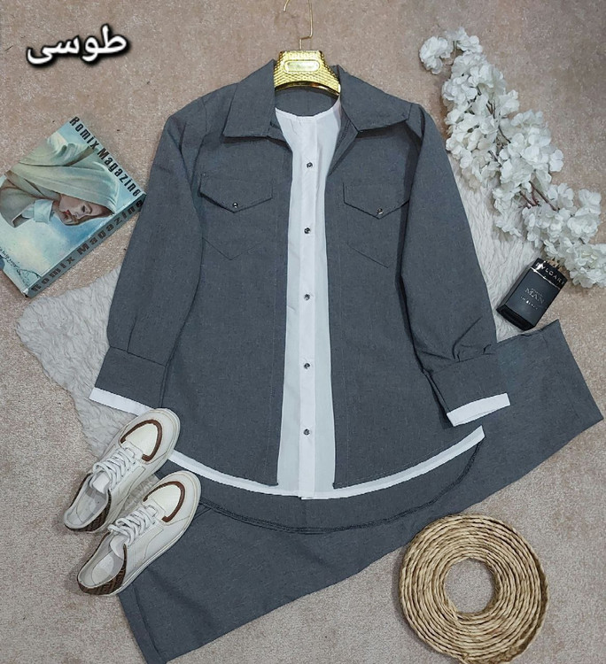 ✅این کار سه تیکه میباشد که تیکه شومیز به لباس از قسمت جلو متصل میباشد و می تونید به عنوان یک ست کامل از اون استفاده کنید✅