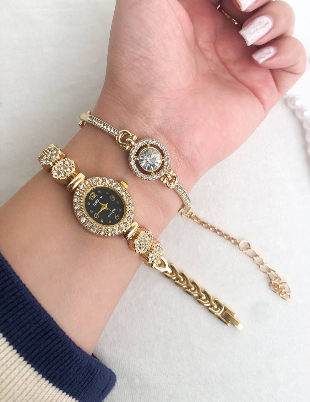 ساعت فول نگین وارداتی از دبی(به همراه دستبند هدیه)