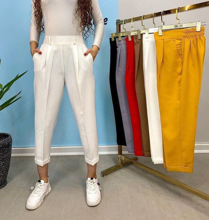 شلوار مازراتی مام استایل جنس مازراتی گرم بالا تنخور بسیار شیک و جذاب کیفیت و دوخت تضمینی دو جیب کاربردی پشت کمر کش قد ۹۰