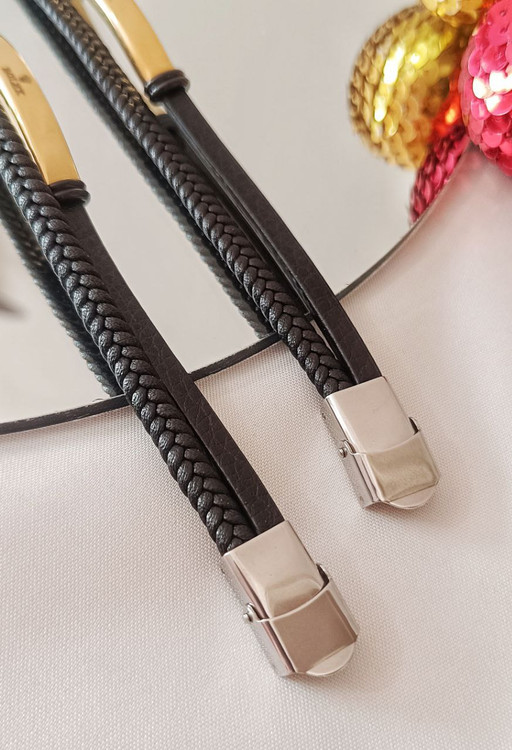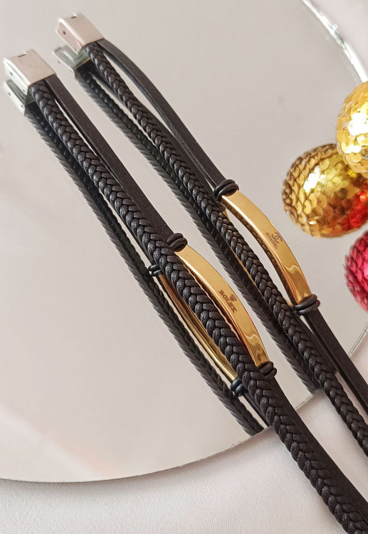 دستبند چرم دوردیف مردانه