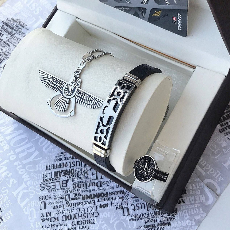 🔻دستبند و انگشتر گردنبند طرح فروهر استیل رنگ ثابت