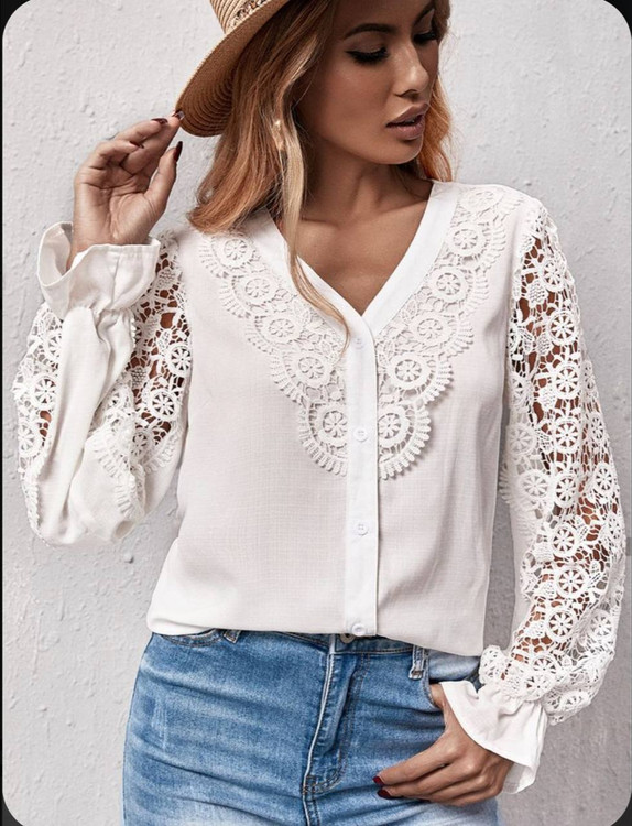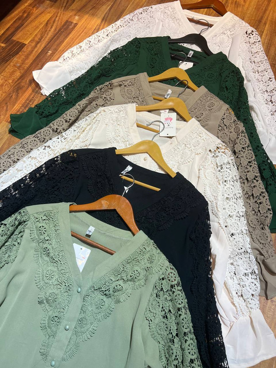 🌹🌹شومیز ۱۴۰۳ یقه هفت ترند سال با خرج کار گیپور وارداتی🌹🌹
