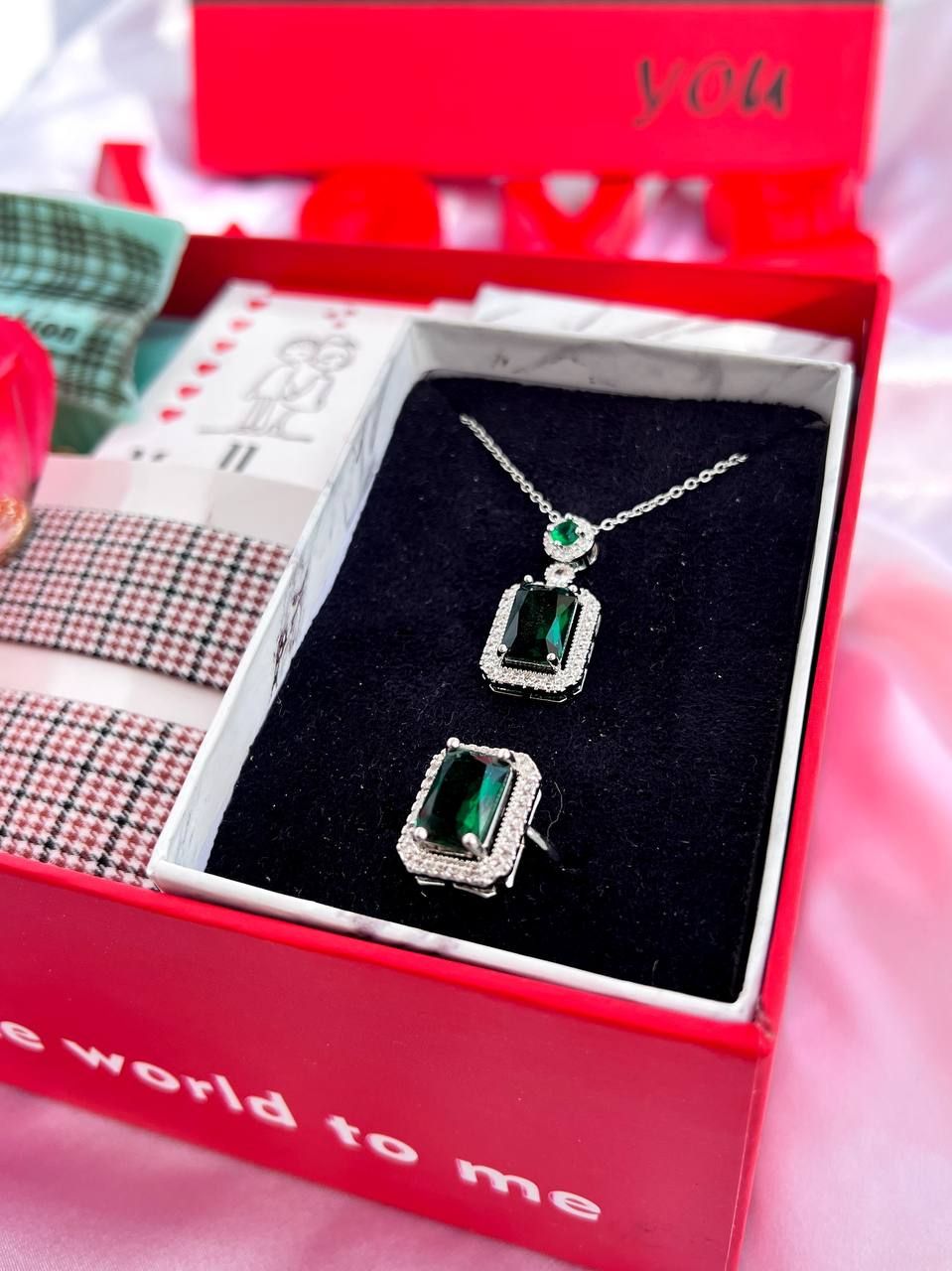 گردنبند و انگشتر نگین سبز یاقوتی