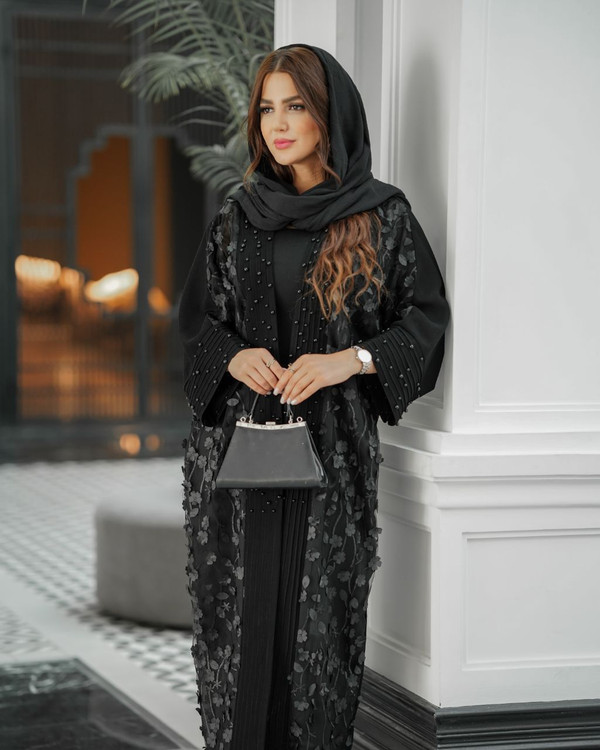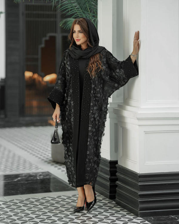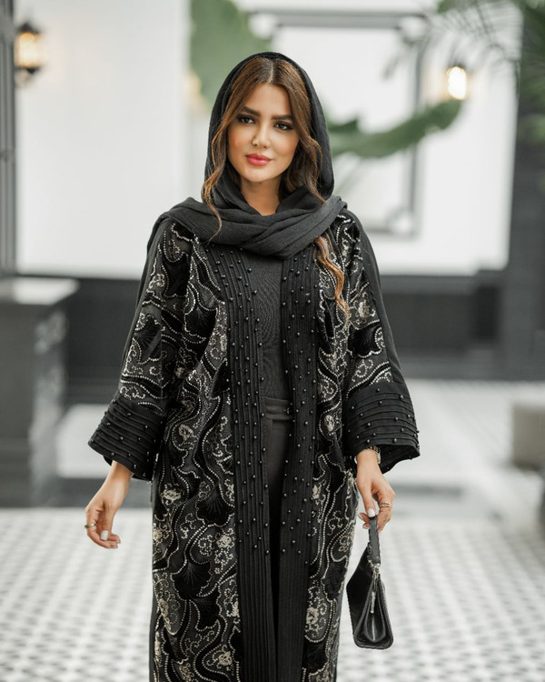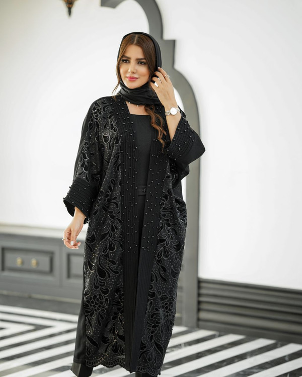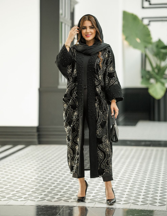 مانتو مشکی مخل دوزی و مروارید دوزی