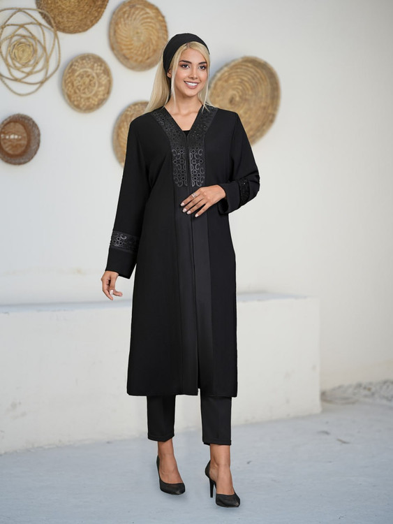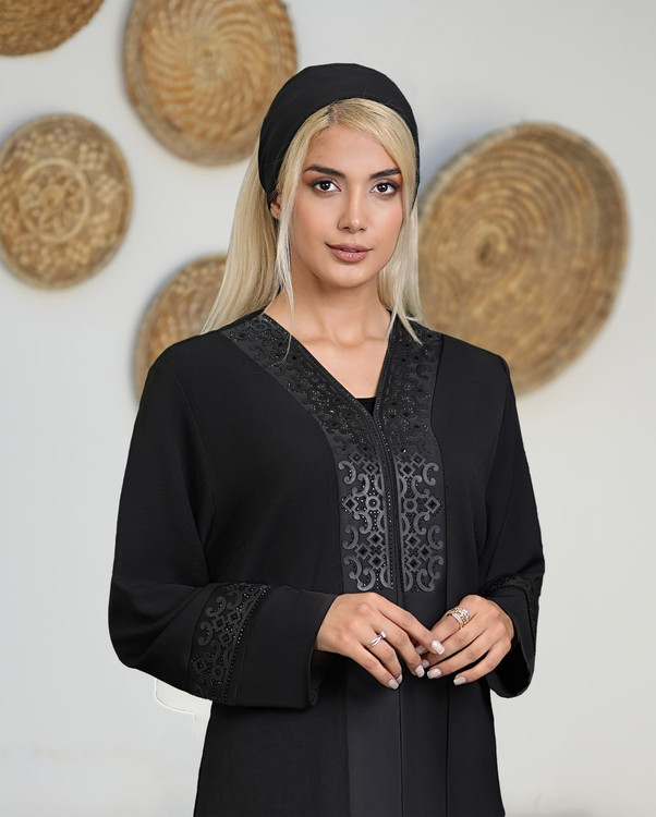 ⏪ جنس: کرپ بیسکوییتی + خرج کار ساتن آمریکایی + چرم مصنوعی برش لیزری + نگین