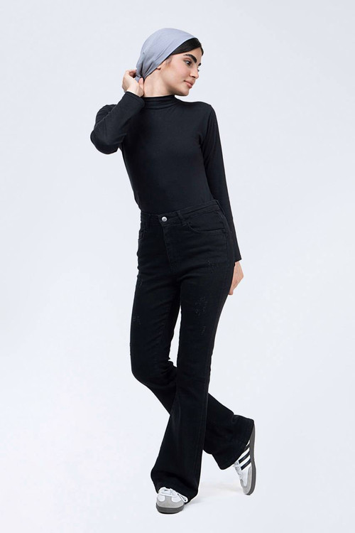 💜 شلوار جین دمپا مشکی کجراه💯