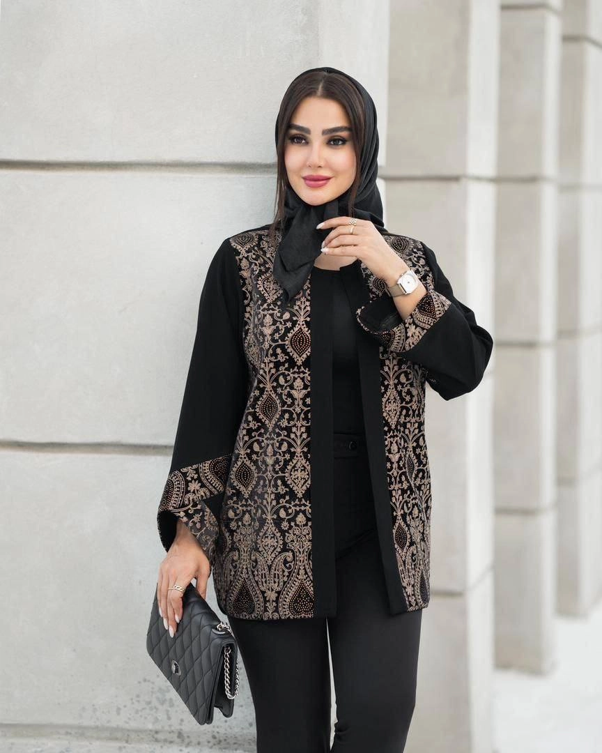 🧥 جنس کرپ مرویجت جت بلک و سوزن دوزی مخمل درجه یک