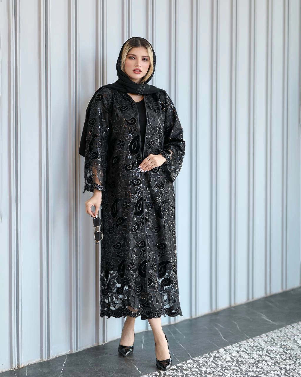 مانتو مجلسی دانتل و پولک در 2 طرح