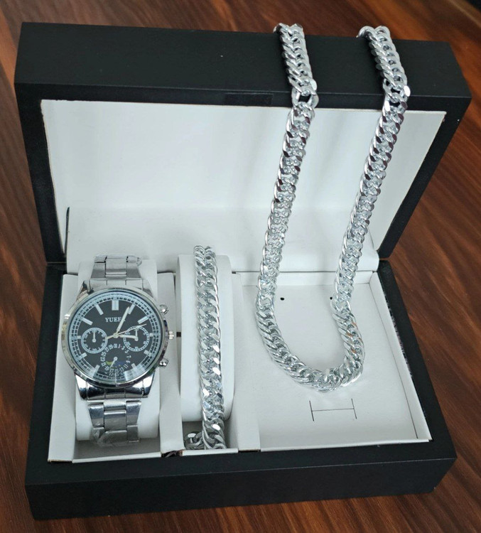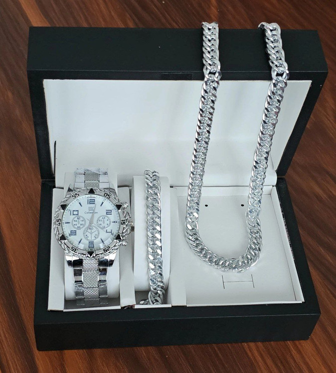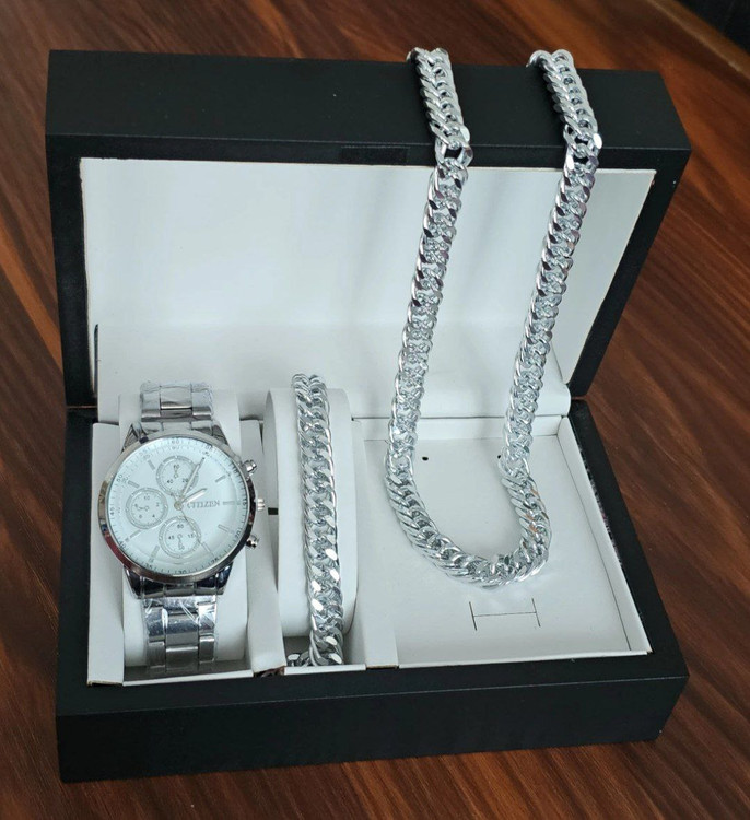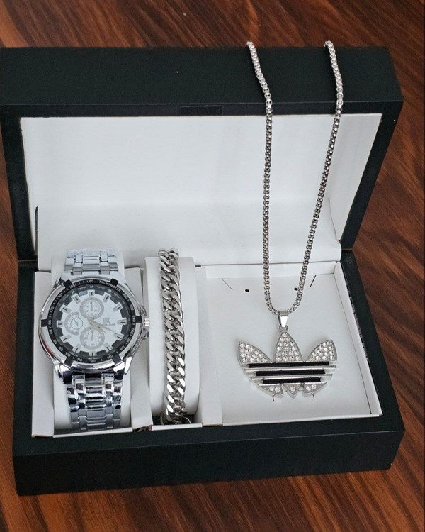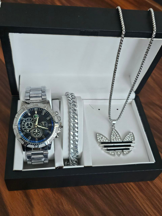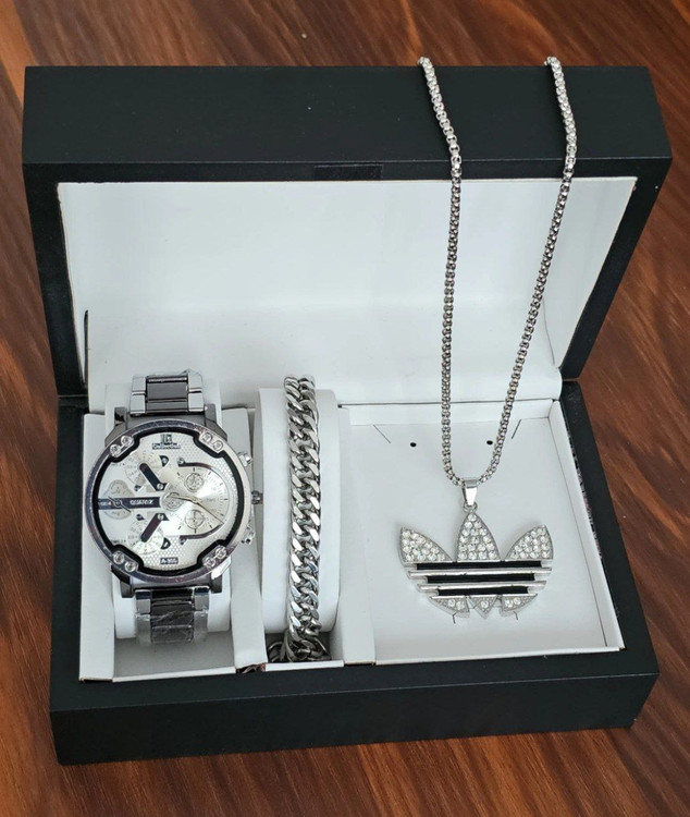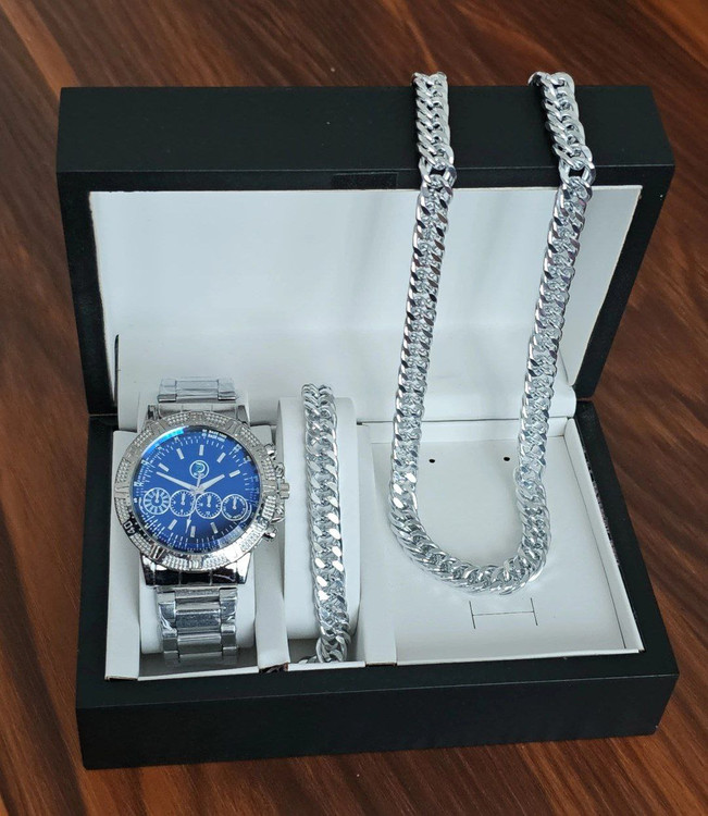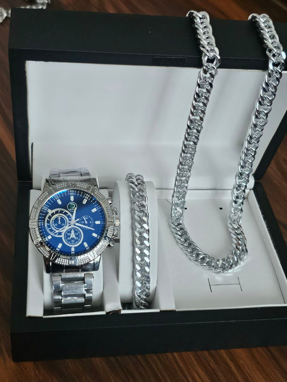 بااکس هدیه ساعت مردانه به همراه دستبند و گردنبند