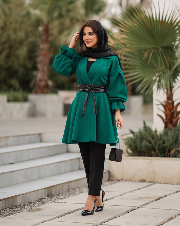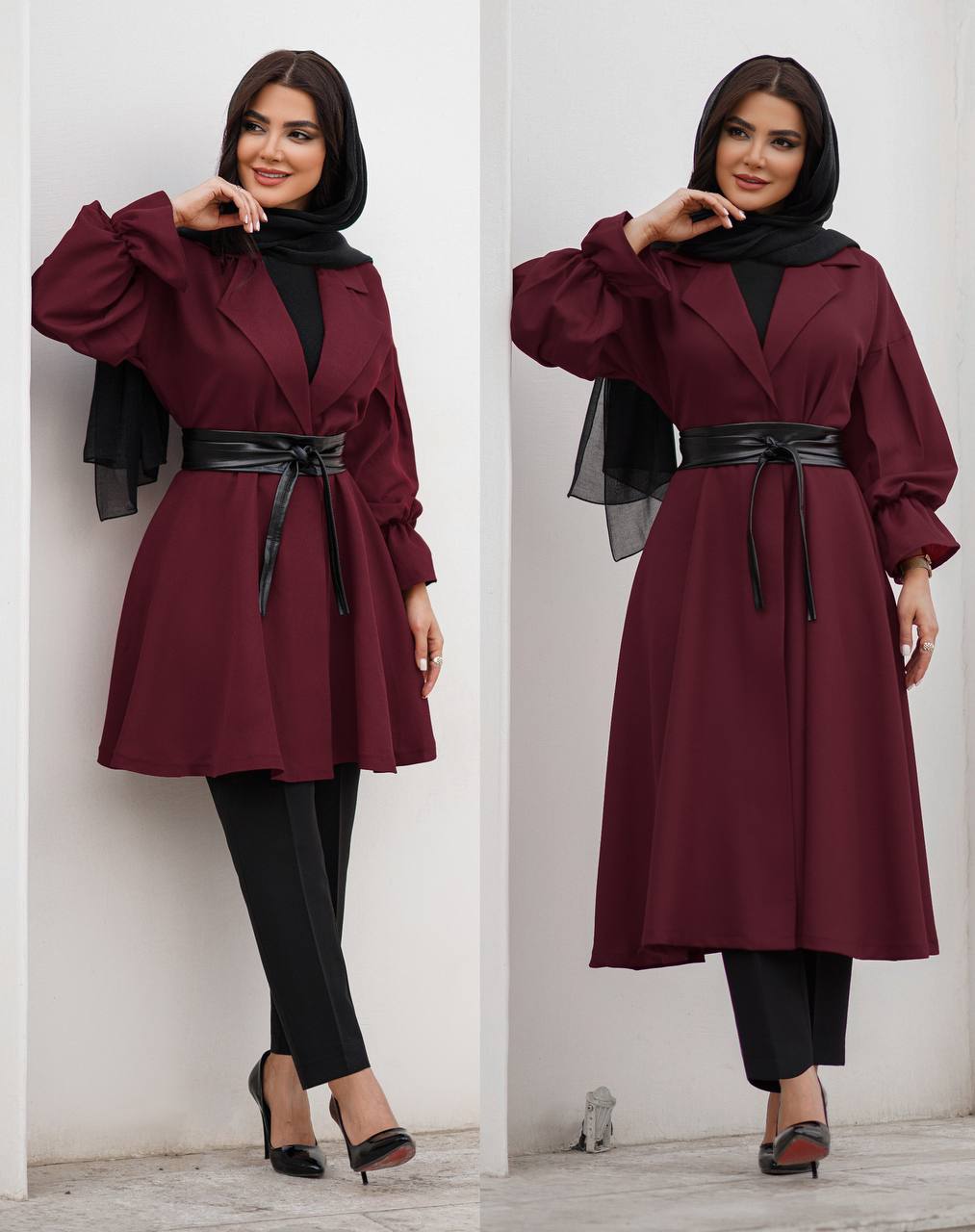 شارژ مجدد مانتو کلوش جذاب + کمربند چرم مزونی 😍✌ در دو قد کوتاه و بلند