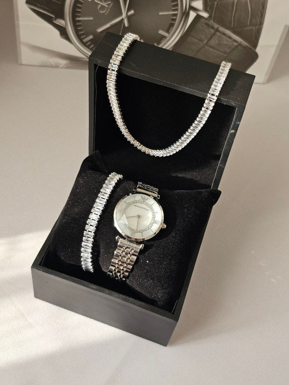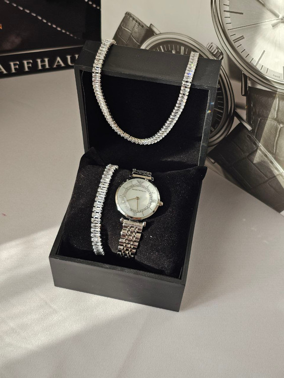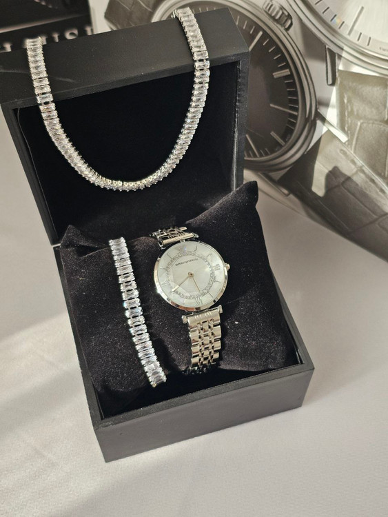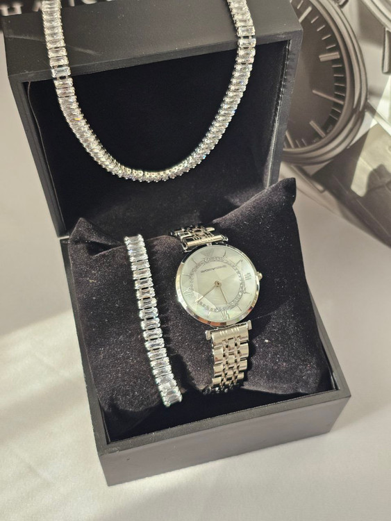 ست ساعت آمپریو آرمانی شیشه خراش به همراه دستبند و گردنبند