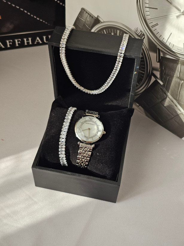 ست ساعت آمپریو آرمانی شیشه خراش به همراه دستبند و گردنبند