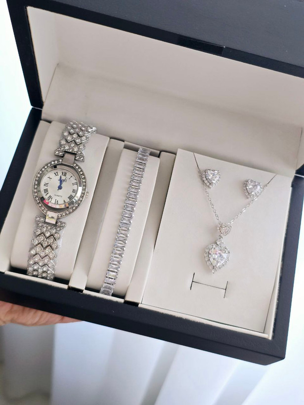 ست ساعت و اکسسوری نگینی زنانه دخترانه ( ست کامل)